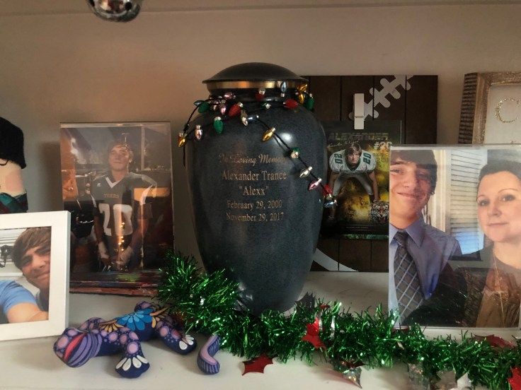 That is the reality to my grief. It may look like I’m strong but I don’t feel it. I haven’t been able to truly accept Alexxs death and the death of the old me. It just doesn’t feel like it. Even though his ashes are in our house. I don’t know how to ever let him go.